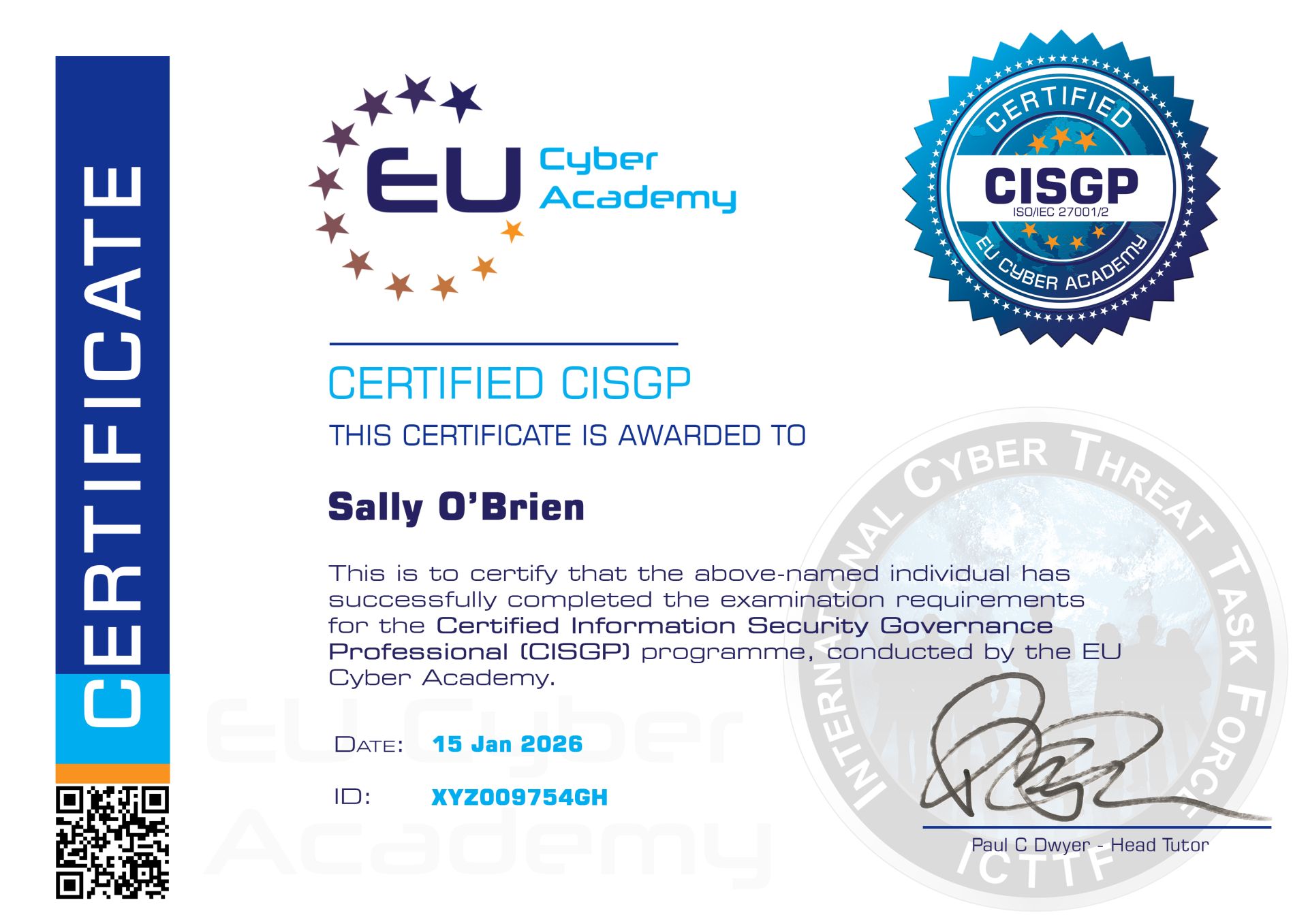The CISGP course is designed and delivered by Paul C. Dwyer, a recognised authority in cybersecurity, compliance, and digital resilience.